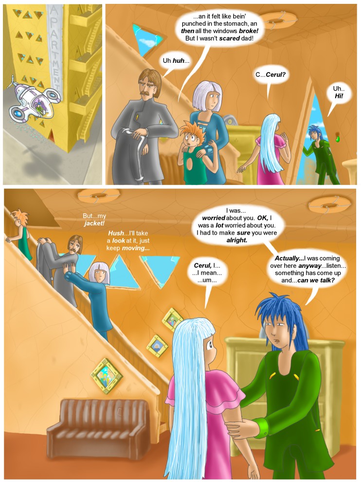 PAGE FOOTNOTES:  Indoor scenes with lots of people are the absolute hardest pages for me to paint. Such pages are very labor intensive, because of the large amount of details to attend to. Of course, some prior bits of art can be partially re-used, especially for backgrounds, something I always try to remember, but nothing can act as a short-cut for characters themselves.