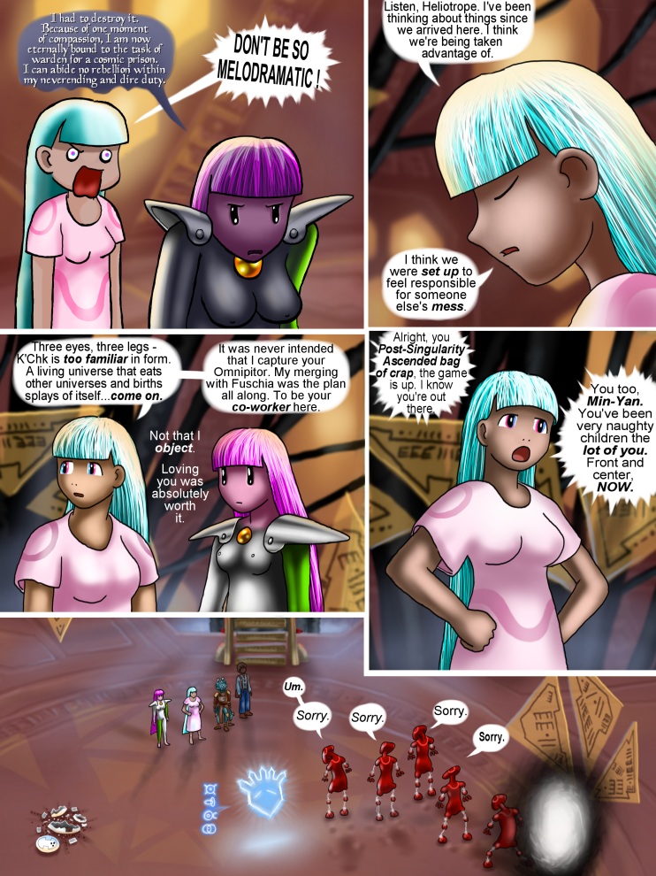 PAGE FOOTNOTES:  I had a lot of fun drawing the expressions of Fuschia and Heliotrope in this page. Especially the first and fourth panels.