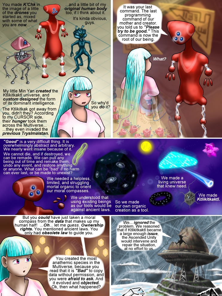 PAGE FOOTNOTES:  The abstract nature of good and evil interests me. It is likely only possible, I think, to construct a moral compass if one has known need, desperation, fear, danger, pain, loss and sorrow. The concept of 'good' is a polar one, and it requires it's opposite in order to have any meaning at all.