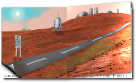 He tossed the others back onto the cardboard table and sat down with his new prize. He flipped through the pages and quickly found the picture story about Mars.