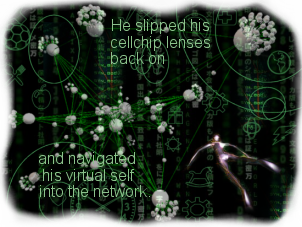 Many people didn't use cellchips. Virtual Reality had slashed the amount of time many people spent away from home, at least those who had homes. Some folks had actually evolved lifestyles that let them stay in their house, apartment or squat full time. Employers quickly accepted the idea of not paying for office buildings to house hundreds or even thousands of workers.